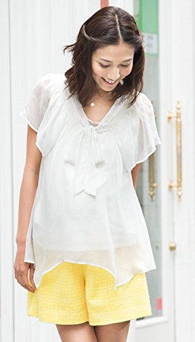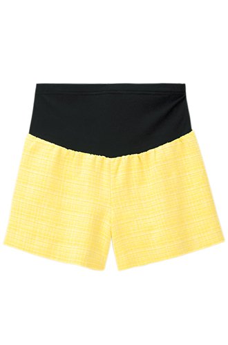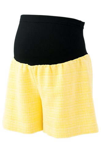 Angeliebe エンジェリーベ マタニティ パンツ サマーツィード フレア ショートパンツ 妊婦服 アジャスター調節可 産前 産後 ズボン M ~ L イエロー 20261 20261102