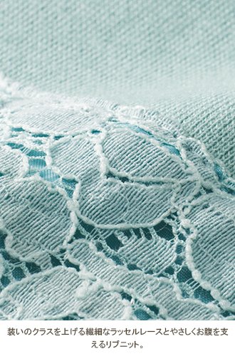 - 装いのクラスを上げる繊細なラッセルレースとやさしくお腹を支えるリブニット。