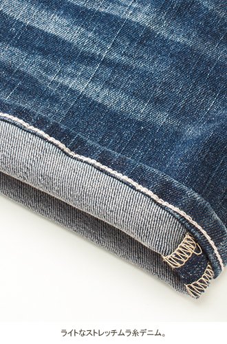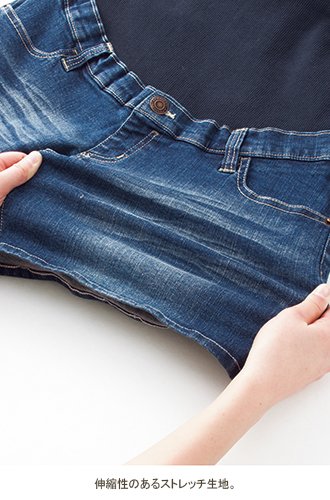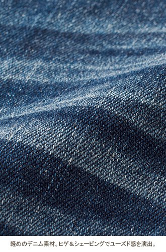 - ●素材/ユーズドブルー=綿97%、ポリウレタン3%、デニムホワイト=綿76%、ポリエステル22%、ポリウレタン2% お腹部分ベアリブニット)=綿95%、ポリウレタン5%