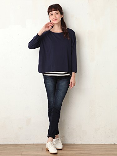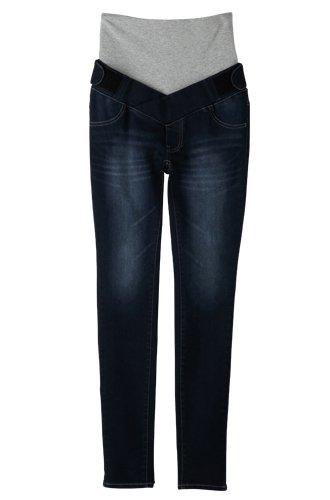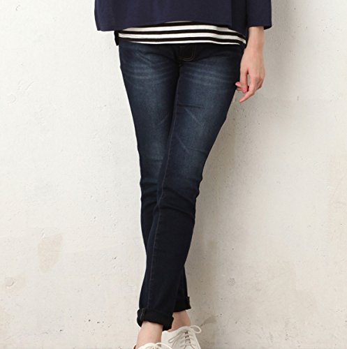 Angeliebe エンジェリーベ マタニティ ハイパー ストレッチ デニム V パンツ 産前 産後 対応 妊婦服 ジーンズ ズボン 9号 ネイビー