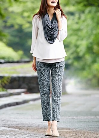 産後まで使える!ツイード風プリントがおしゃれなテーパードパンツ