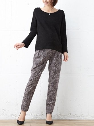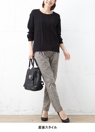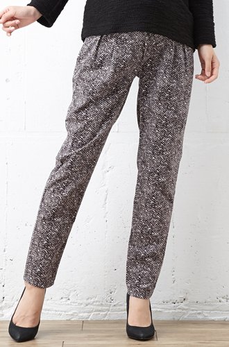 産後まで使える!ツイード風プリントがおしゃれなテーパードパンツ
