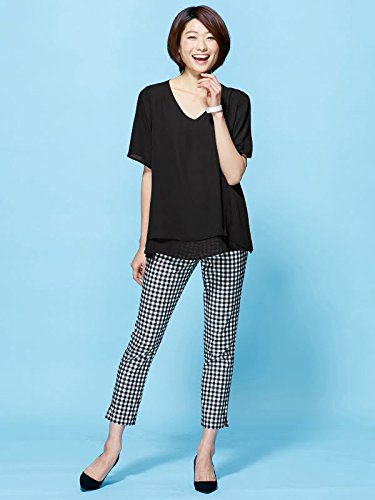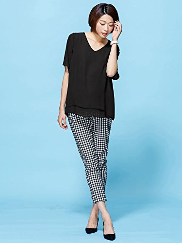 Angeliebe エンジェリーベ マタニティ P ・ パンツ 接触 冷感 ストレッチ クロップド ( 八分丈 ) 妊婦服 ウエストゴム アジャスター調節可 7号 ブラック × オフ