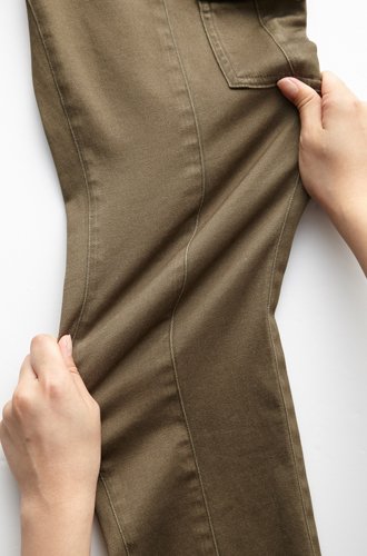 きれいめなカジュアルコーデにぴったりの大人めカーゴパンツ。センターシームと細めのきれいなラインで美脚を演出します。