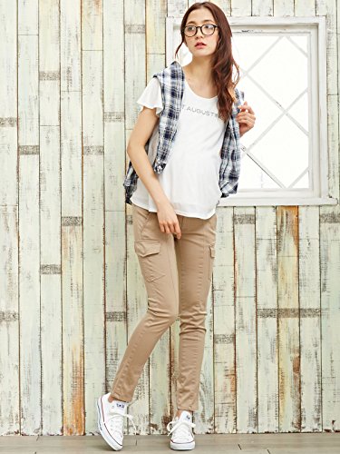 Angeliebe エンジェリーベ マタニティ P ・ パンツ ストレッチ チノ カーゴ スキニー 妊婦服 アジャスター調節可 7号 ベージュ