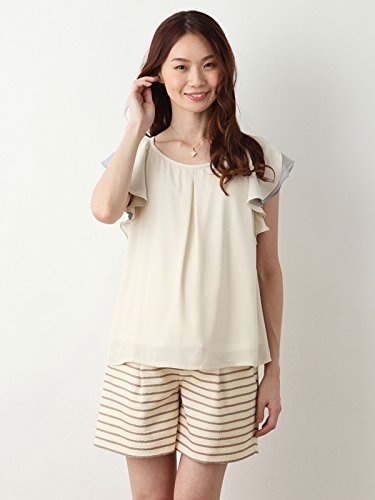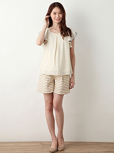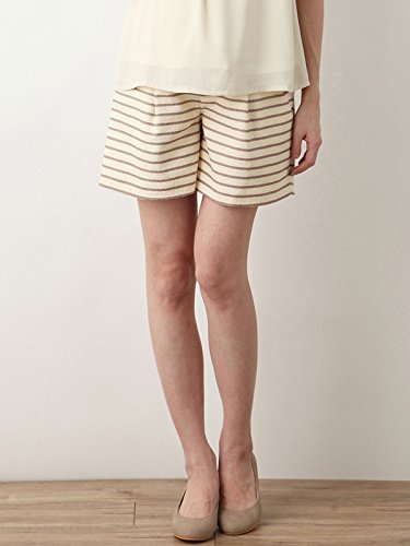Angeliebe エンジェリーベ マタニティ ジャガード ボーダー ショート パンツ 妊婦服 アジャスター調節可 M ベージュ