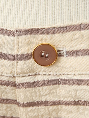 表面感のあるジャガード素材にボーダーをプリントしているので上品な印象に。カジュアルスタイルはもちろん、きちんと感のあるキレイめスタイルにも使えるアイテムです。