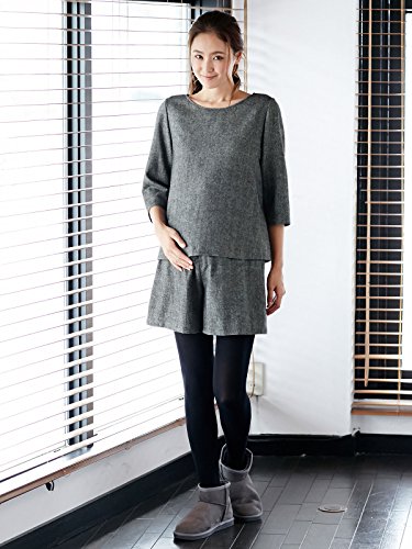 Angeliebe エンジェリーベ マタニティ P ・ パンツ ウール 混 ショート ボトム 妊婦服 ウエストゴム アジャスター調節可 裏地付 7号 ミックス グレー 21037 21037310