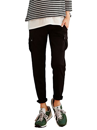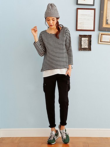 Angeliebe エンジェリーベ マタニティ P ・ パンツ ストレッチ やわらか ツイル カーゴ パンツ 妊婦服 アジャスター調節可 ウエストゴム 11号 ブラック