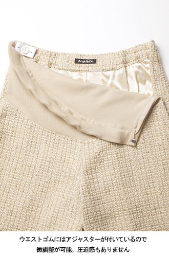 Angeliebe エンジェリーベ マタニティ P ・ パンツ ラメ ツイード ショート ボトム 妊婦服 アジャスター調節可 11号 ホワイト