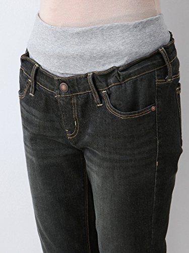 Angeliebe エンジェリーベ マタニティ パンツ ハイブリット スキニー デニム 産前 産後 対応 妊婦服 アジャスター調節可 ジーンズ 7号 デニム ブラック