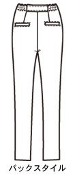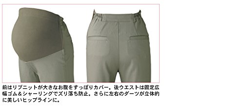 - ●前=お腹部分にリブニット切り替え 飾りファスナー開き ウエスト=フロントはボタンホール付ゴム入り調節可 左サイドファスナー開き 後=ウエストセンターに固定広幅ゴム、両サイドにゴムシャーリング 左右にダーツ 左右片玉縁ヒップポケット