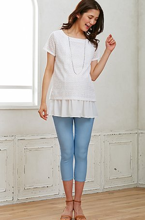 【 アウトレット 】 Angeliebe エンジェリーベ マタニティ ウルトラ ハイ テンション ストレッチ クロップド パンツ 妊婦服 ズボン アジャスター調節可 S デニム ブリーチ