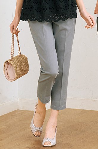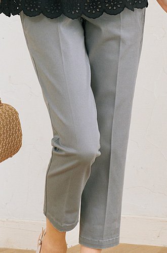 余裕のあるシルエットとセンタープレスが、気になる脚のラインを上手に隠します。