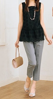 軽やかな印象のクロップド丈パンツ。