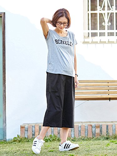 Angeliebe エンジェリーベ マタニティ 綿 ツイル ストレート ワイド パンツ 妊婦服 産前 産後 アジャスター調節可 ズボン M ブラック