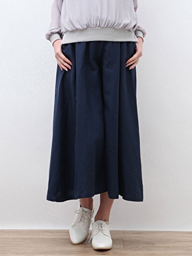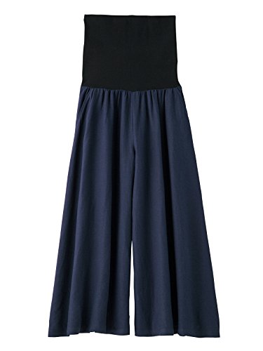 Angeliebe エンジェリーベ マタニティ フィット 麻 混 ワイド パンツ 産前 産後 対応 妊婦服 ズボン 7号 ネイビー