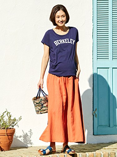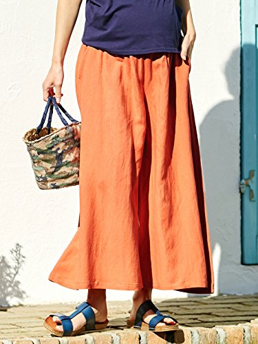 Angeliebe エンジェリーベ マタニティ フィット 麻 混 ワイド パンツ 産前 産後 対応 妊婦服 ズボン 7号 オレンジ