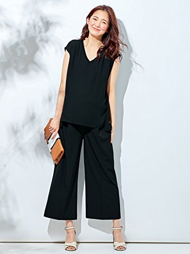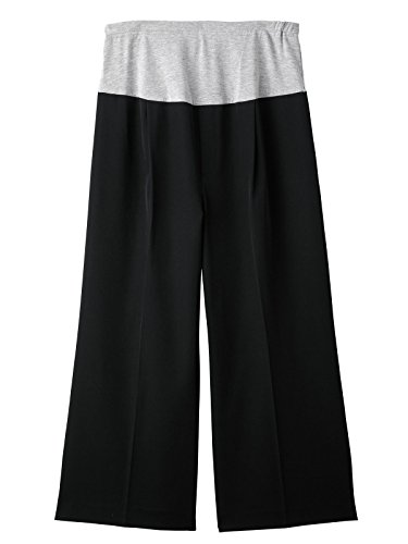 Angeliebe エンジェリーベ マタニティ パンツ ストレッチ ナチュラル ワイド クロップド 妊婦服 産前 産後 M ~ L ブラック 21470 21470302