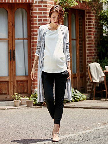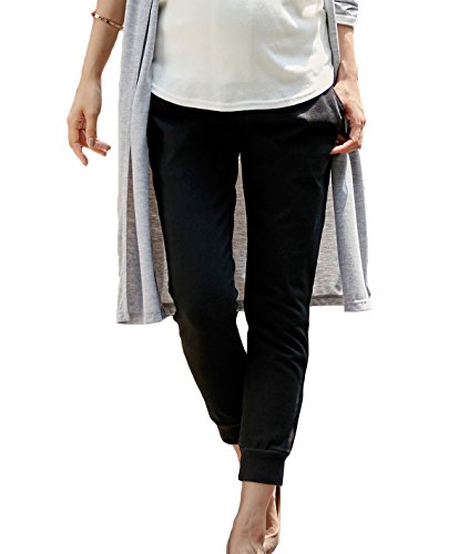 Angeliebe エンジェリーベ マタニティ ニット ツイル ジョガー パンツ 妊婦服 産前 産後 アジャスター調節可 ズボン L ブラック