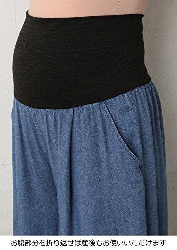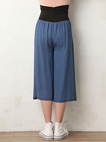 Angeliebe エンジェリーベ マタニティ パンツ レーヨン デニム スカンツ 妊婦服 産前 産後 デニム ガウチョ スカーチョ S ~ M ネイビー 21541 21541101
