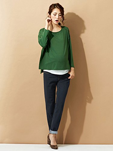 - ●【産前~産後まで使えるテーパードデニムパンツ】コットンデニムで肌にも優しい。お腹部分はやわらかい天竺カットソー。後ろ両サイドにサイズ調節用のアジャスターが付いています。前スナップとファスナーが開くのでウエストインスタイルも楽しめます。