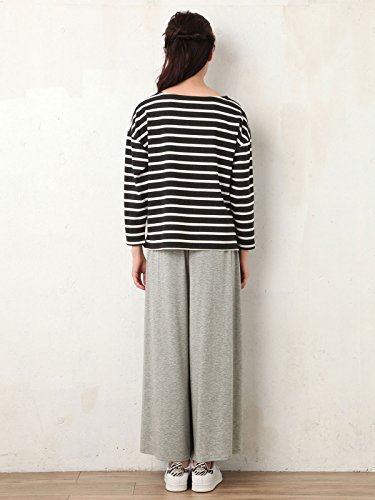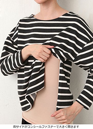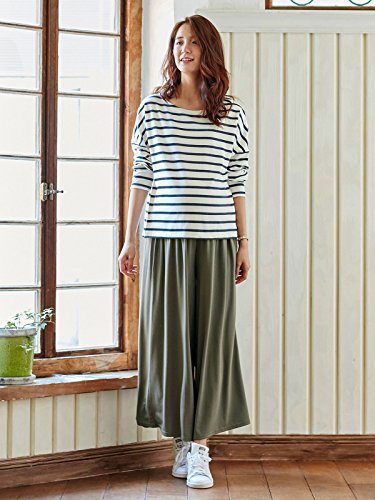 Angeliebe エンジェリーベ マタニティ 授乳口 付 ミニ 裏毛 ボーダー × ワイド パンツ セットアップ 産前 産後 対応 妊婦服 授乳服 部屋着 M ネイビー ボーダー × カーキ