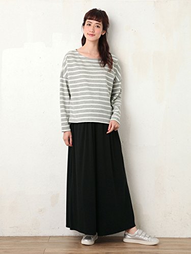 Angeliebe エンジェリーベ マタニティ 授乳口付き ミニ 裏毛 ボーダー × ワイドパンツ セットアップ 産前 産後 妊婦服 部屋着 L グレー ボーダー × ブラック21573 21573370