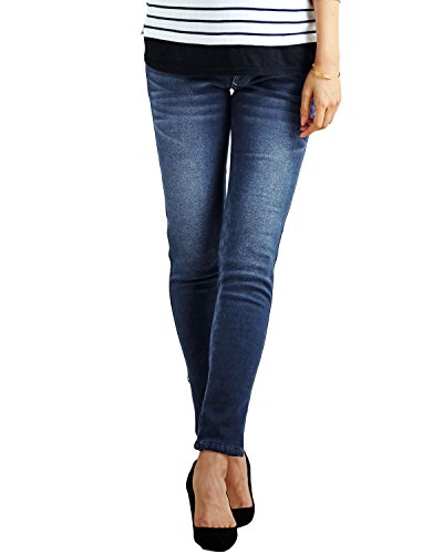 Angeliebe エンジェリーベ マタニティ P ・ パンツ あったか ストレッチ デニム スキニー 妊婦服 裏起毛 ウエストゴム アジャスター調節可 13号 ユーズド ブルー 21627 21627240