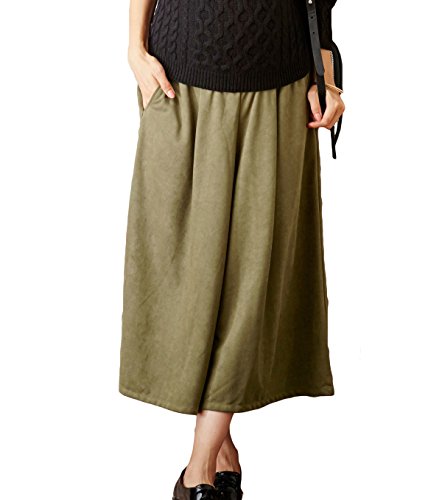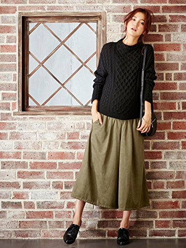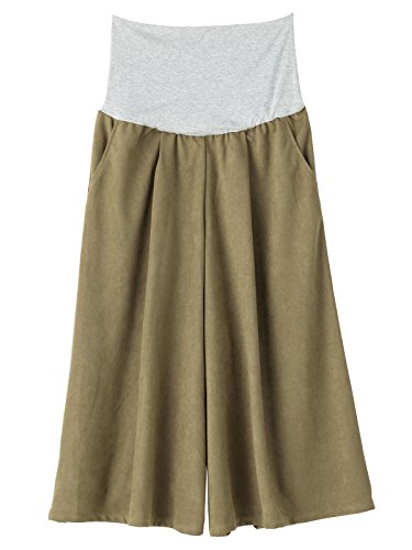 Angeliebe エンジェリーベ 産前 産後 対応 ストレッチ スウェード ガウチョ パンツ マタニティー 妊婦服 ズボン M ~ L カーキ