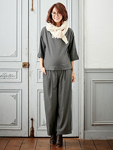Angeliebe エンジェリーベ マタニティ パンツ 産前 産後 対応 ストレッチ ワイドパンツ 妊婦服 ズボン フリー 杢 グレー 21688 21688200