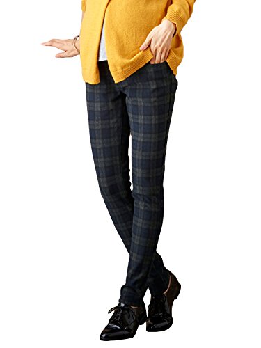 Angeliebe エンジェリーベ マタニティ パンツ あったか 裏フェルト タッチ 起毛 スキニーパンツ 産前 産後 対応 ズボン 裏起毛 アジャスター調節可 妊婦服 13号 ブルー チェック 21502 21502340