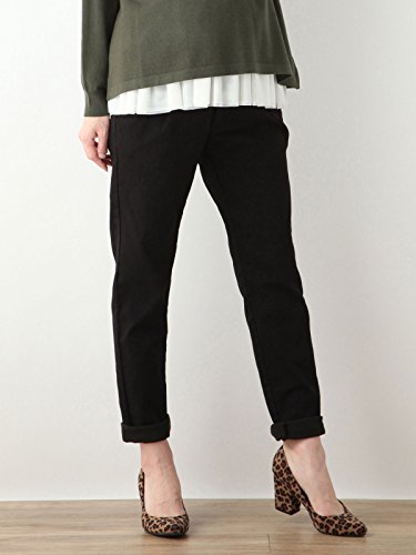 Angeliebe エンジェリーベ マタニティ やわらか 裏起毛 テーパード パンツ 産前 産後 対応 妊婦服 ウエストゴム アジャスター調節可 9号 ブラック