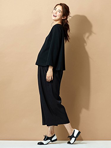Angeliebe エンジェリーベ マタニティ パンツ フィット タック ワイドパンツ 妊婦服 産前 産後 ズボン S ~ M ブラック 21635 21635301