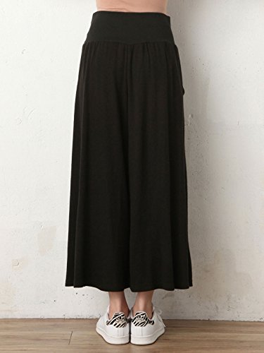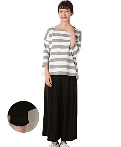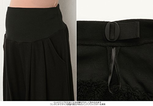 Angeliebe エンジェリーベ 産前 産後 対応 ボア パンツ in ポンチ 表 起毛 マキシ スカーチョ L ブラック