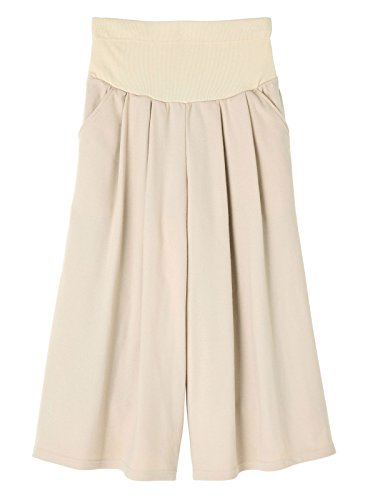 Angeliebe エンジェリーベ マタニティ ボア パンツ in ポンチ 表 起毛 マキシ スカーチョ 産前 産後 対応 妊婦服 あったか スカンツ ガウチョ L ベージュ