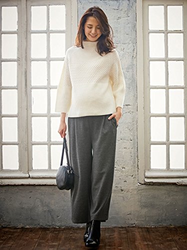 Angeliebe エンジェリーベ 産前 産後 対応 起毛 ポンチ ワイド パンツ M ~ L 杢 チャコール