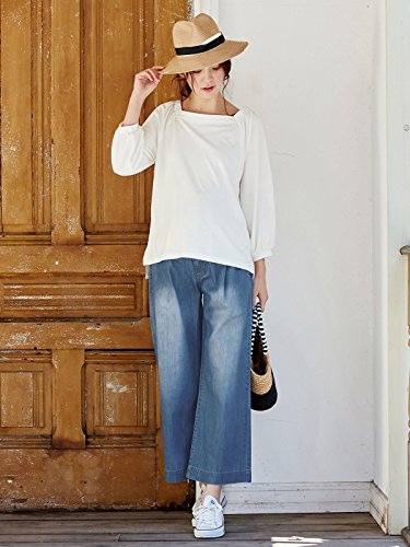 Angeliebe エンジェリーベ マタニティ パンツ 産前 産後 対応 コットン 100% タック ワイド デニム (2レングス展開) 妊婦服 ジーンズ ワイドパンツ 9号 ブルー 66㎝ 丈 21791