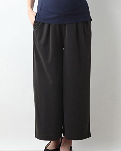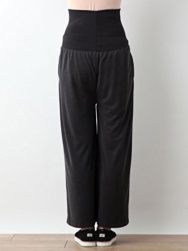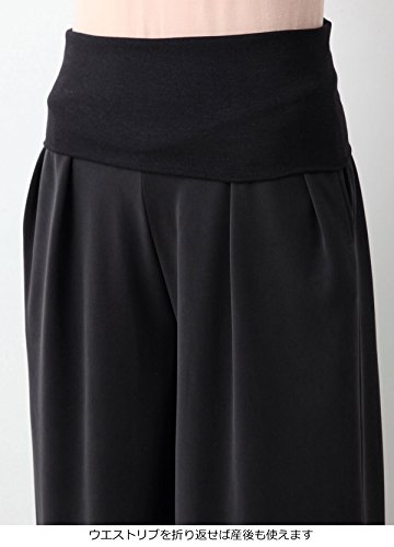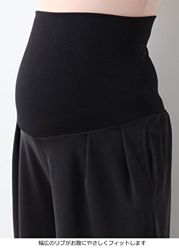 Angeliebe エンジェリーベ マタニティ パンツ パウダー ピーチスキン タック ワイドパンツ 妊婦服 産前 産後 対応 M ~ L スモーキー ブラック 21906 21906102