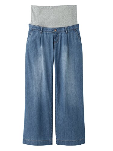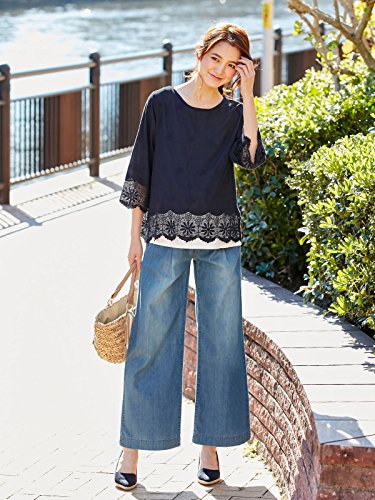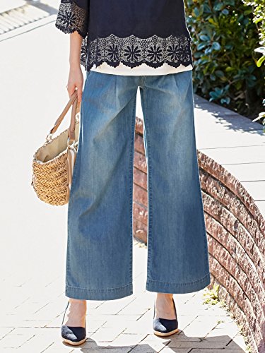 Angeliebe エンジェリーベ マタニティ パンツ 産前 産後 対応 コットン 100% タック ワイド デニム (2レングス展開) 妊婦服 ジーンズ ワイドパンツ 9号 ブルー 75㎝ 丈 21791 21791420