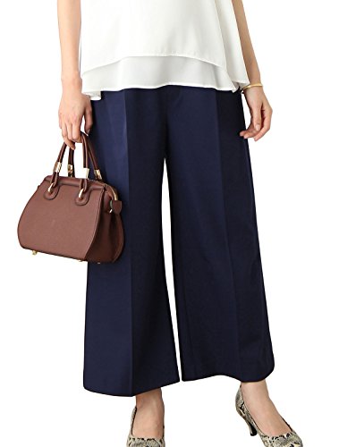 Angeliebe エンジェリーベ マタニティ パンツ ストレッチ ナチュラル ワイド クロップド 妊婦服 産前 産後 S ~ M ネイビー 21470 21470401