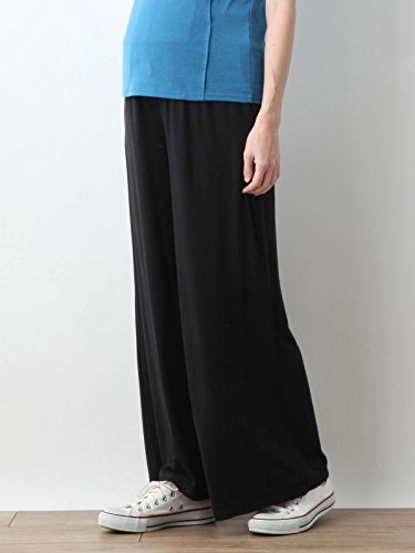 Angeliebe エンジェリーベ マタニティ パンツ とろみ素材 ワイドパンツ 妊婦服 産前 産後 対応 S ~ M ブラック 21765 21765101