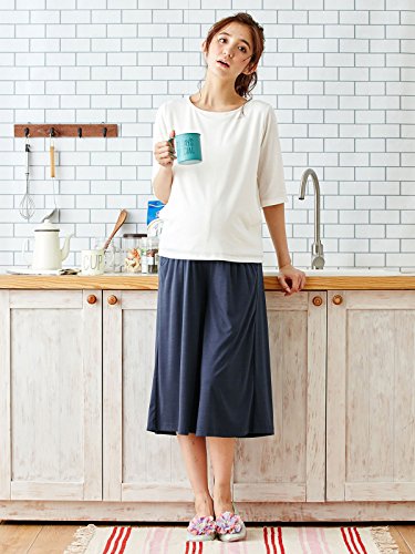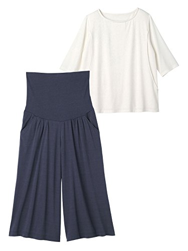 Angeliebe エンジェリーベ マタニティ 授乳口付き 産後 も使える パンツ付き 五分袖 トップス & ガウチョ パンツ セット 妊婦服 M ~ L オフ × ネイビー 21994 21994402