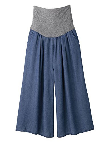Angeliebe エンジェリーベ マタニティ パンツ レーヨン デニム フレア ワイドパンツ 妊婦服 産前 産後 S~M ネイビー 22025 22025101