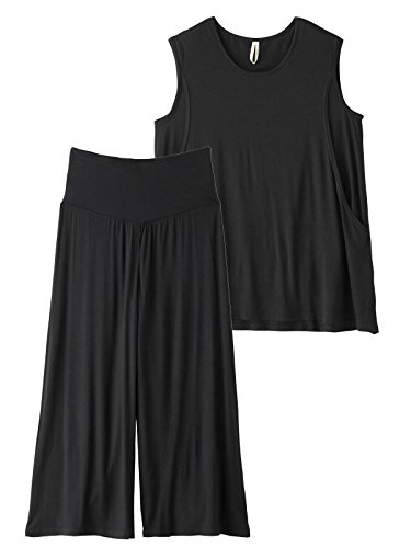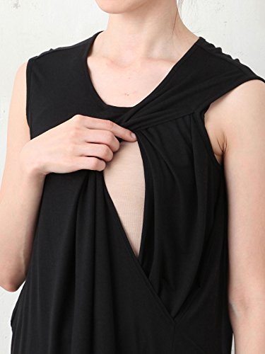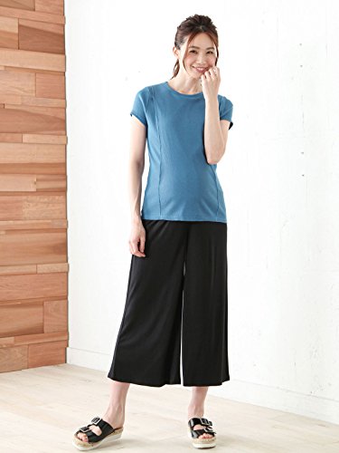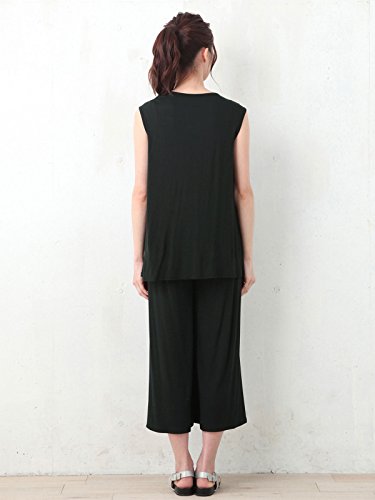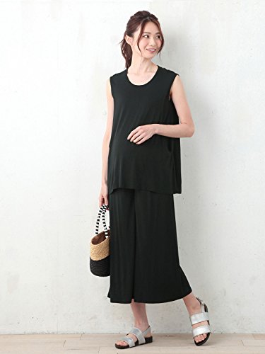 Angeliebe エンジェリーベ マタニティ 授乳口付き 涼感 アップ ノースリーブ & ガウチョ パンツ セット 妊婦服 産前 産後 セットアップ M~L ブラック 21881 21881102