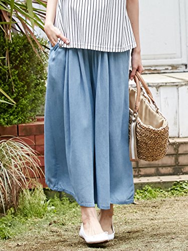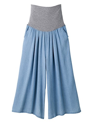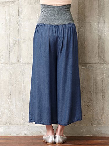 Angeliebe エンジェリーベ マタニティ パンツ レーヨン デニム フレア ワイドパンツ 妊婦服 産前 産後 S~M ブルー 22025 22025201