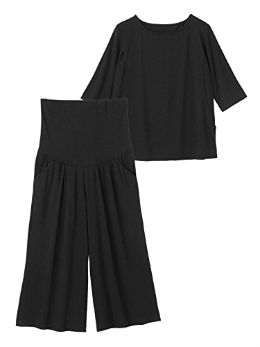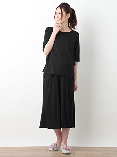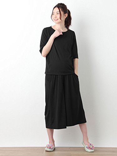 Angeliebe エンジェリーベ マタニティ 授乳口付き 産後 も使える パンツ付き 五分袖 トップス & ガウチョ パンツ セット 妊婦服 M ~ L ブラック × ブラック 21994 21994202