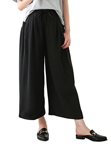 Angeliebe エンジェリーベ マタニティ パンツ ジョーゼット タック ワイドパンツ 妊婦服 産前 産後 アジャスター調節可 L ブラック 21953 21953170