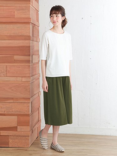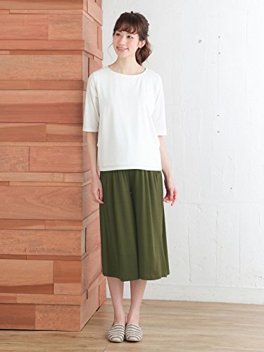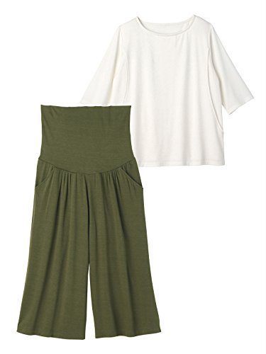 Angeliebe エンジェリーベ マタニティ 授乳口付き 産後 も使える パンツ付き 五分袖 トップス & ガウチョ パンツ セット 妊婦服 S ~ M オフ × カーキ 21994 21994101