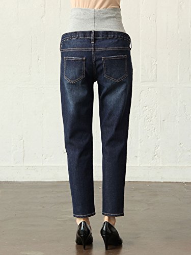 Angeliebe エンジェリーベ マタニティ パンツ ストレッチ デニム ダメージ テーパード 妊婦服 産前 産後 11号 ネイビー 22179 22179130